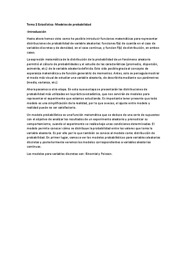 He publicado nuevos apuntes de 2º Estadística II: Tema 2. Modelos de probabilidad.pdf