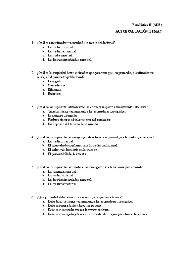 He publicado nuevos test de 2º Estadística II: Preguntas Test. Tema 6 (2024-2025).pdf