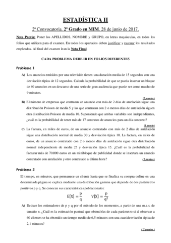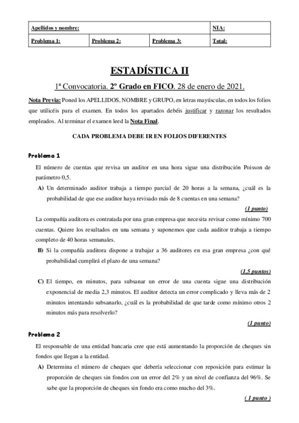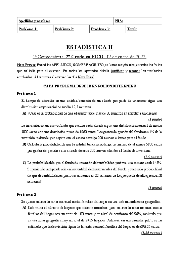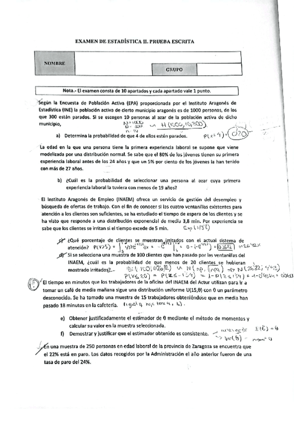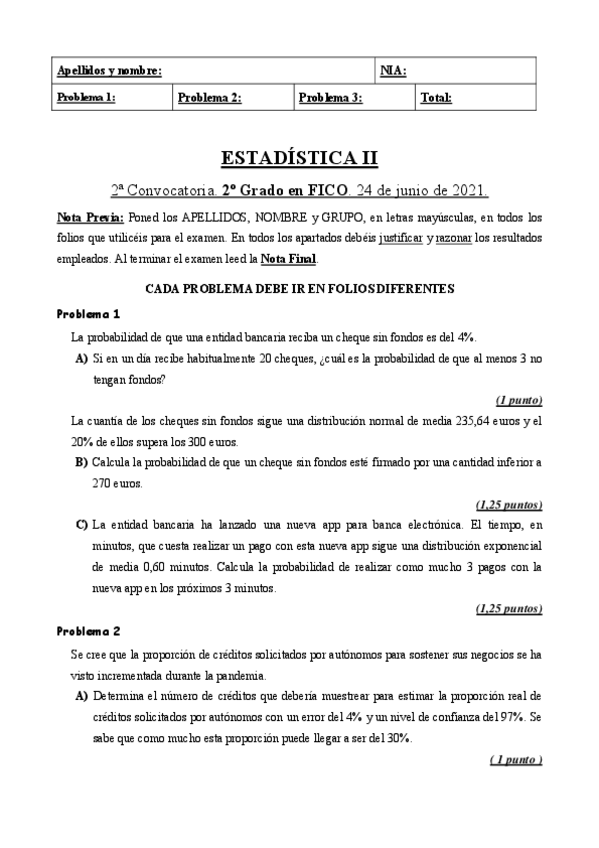 He publicado nuevos examenes de 2º Estadística II: examen estadistica.pdf