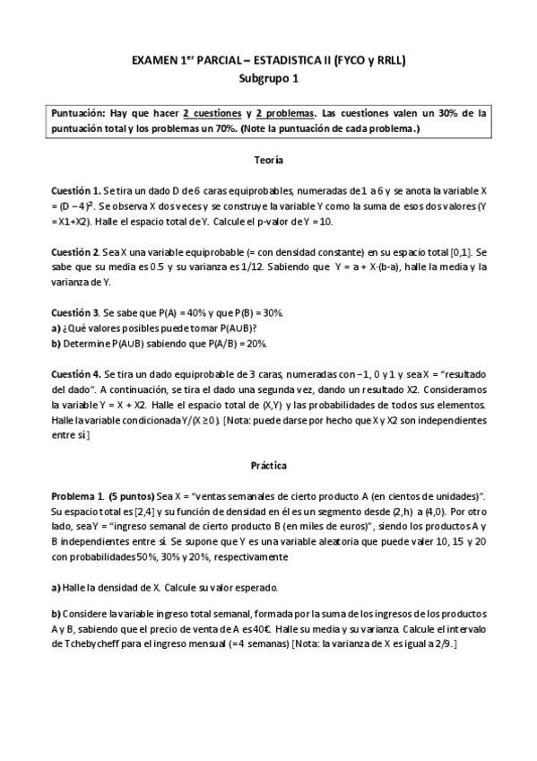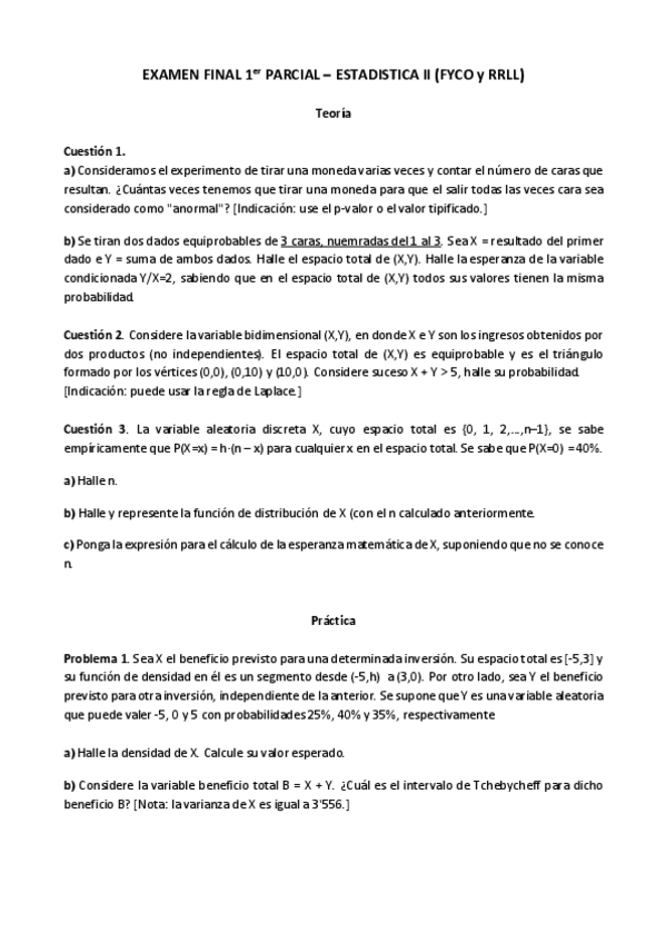 He publicado nuevos examenes de 3º Estadística II: Solucion examen final 1º parcial 2020