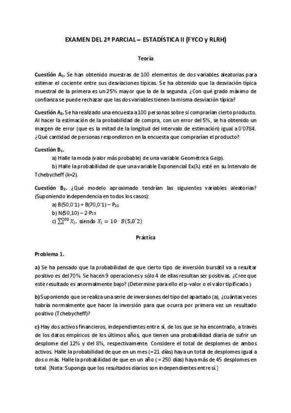 He publicado nuevos apuntes de 3º Estadística II: exámenes segundo parcial corregidos