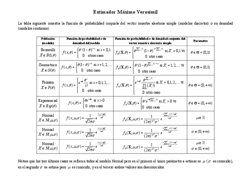 He publicado nuevos apuntes de 3º Estadística II: TABLA-Estimador-Maximo-Verosimil-y-Ejemplos.pdf