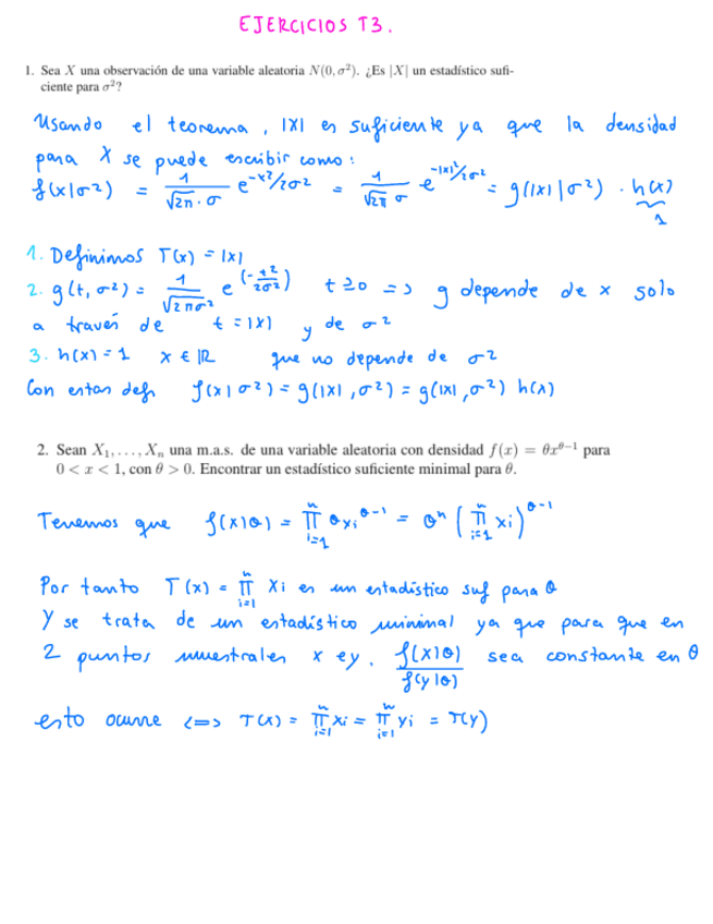 He publicado nuevos ejercicios de 4º Estadística Matemática: Suficiente para aprobar primera parte