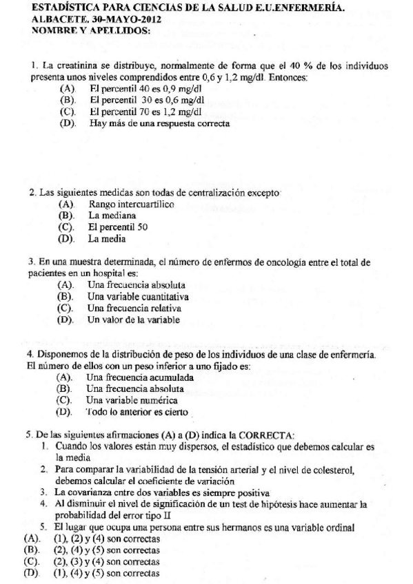 He publicado nuevos examenes de 1º Estadística para Ciencias de la Salud: EXAMEN-ESTADISTICA-2012.pdf