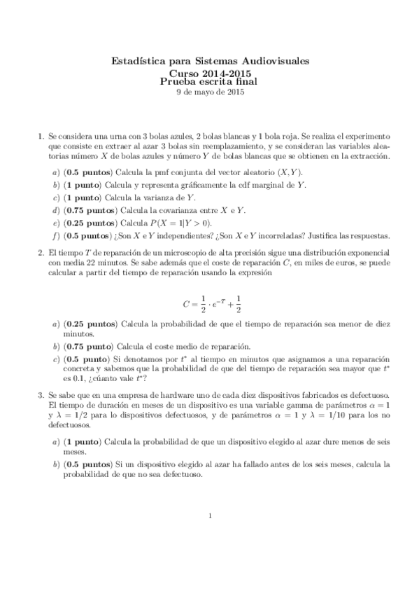 He publicado nuevos examenes de 1º Estadística para Sistemas Audiovisuales: examen2.pdf