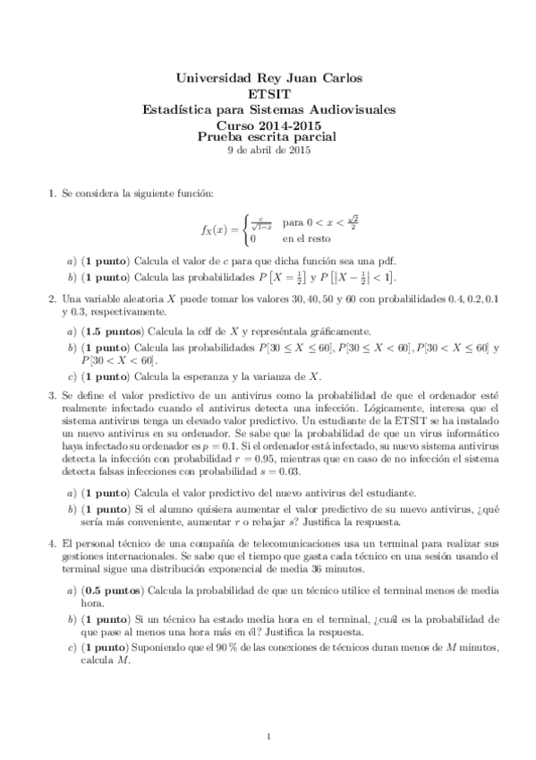 He publicado nuevos examenes de 1º Estadística para Sistemas Audiovisuales: Examen-parcial-15-de-abrilRESUELTO.pdf