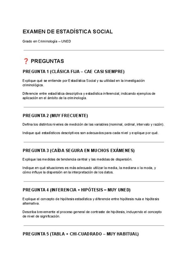 ESTADÍSTICA SOCIAL – UNED EXAMEN TIPO TEST (90 PREGUNTAS) CAEN SI O SI EN EL EXAMEN