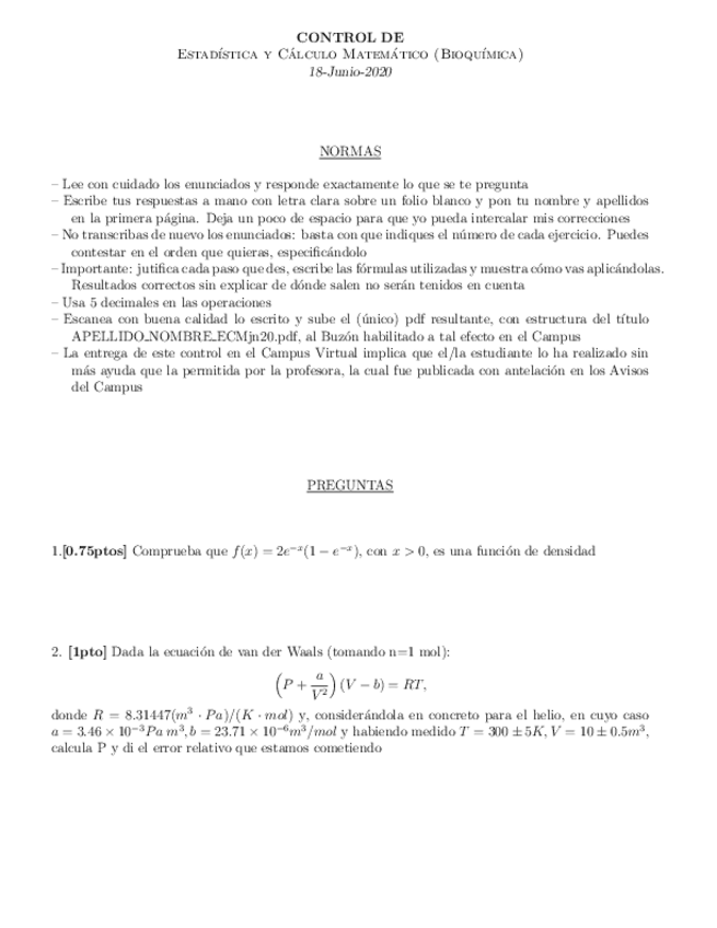 He publicado nuevos examenes de 1º Estadística y Cálculo Matemático: controlECMjn202a.pdf