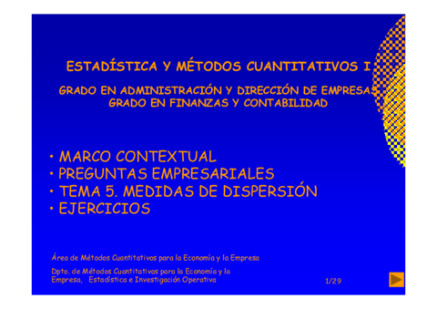 He publicado nuevos apuntes de 1º Estadística y Métodos Cuantitativos I: Presentaciones por temas