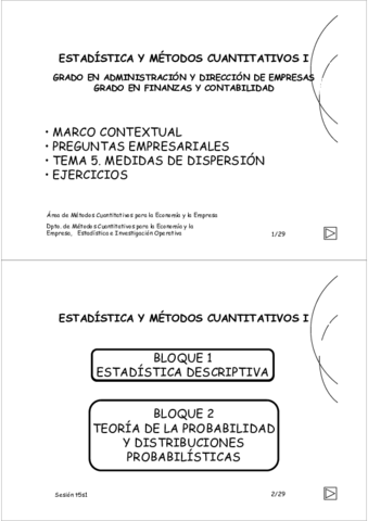 He publicado nuevos apuntes de 1º Estadística y Métodos Cuantitativos I: 01.temario