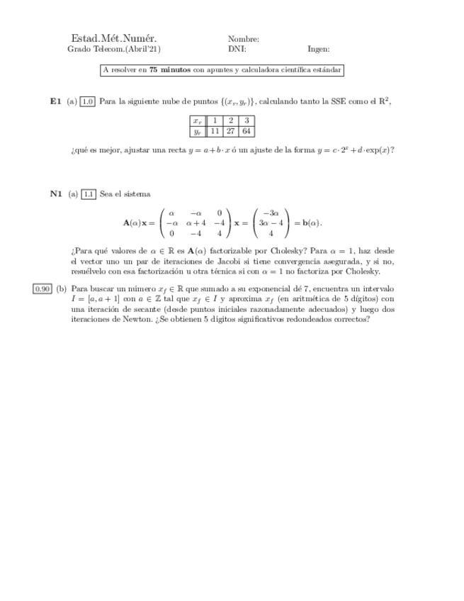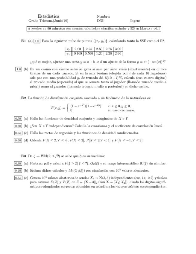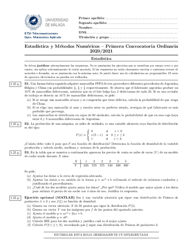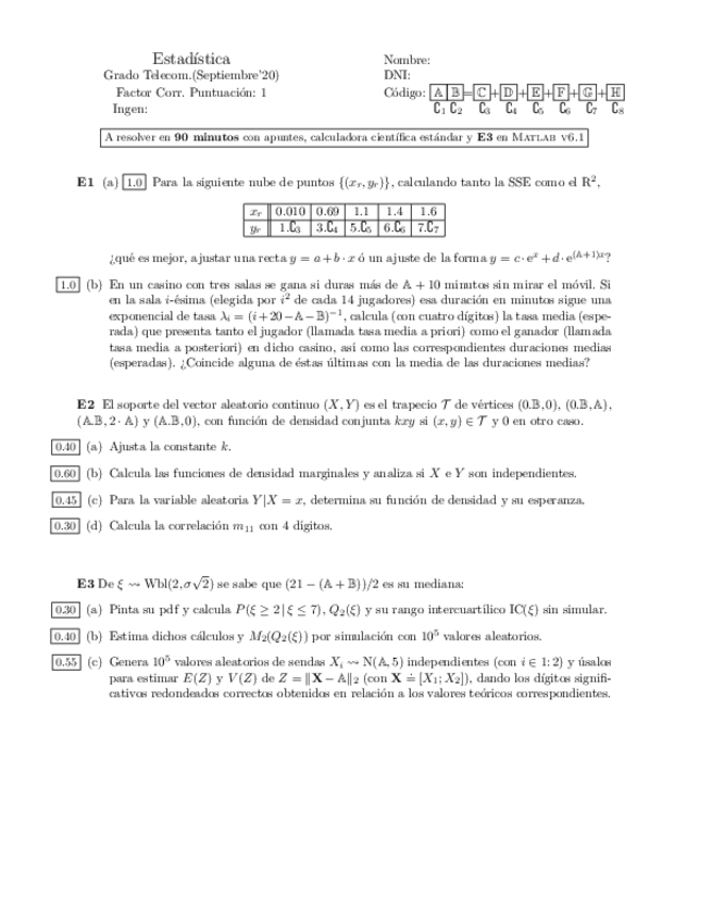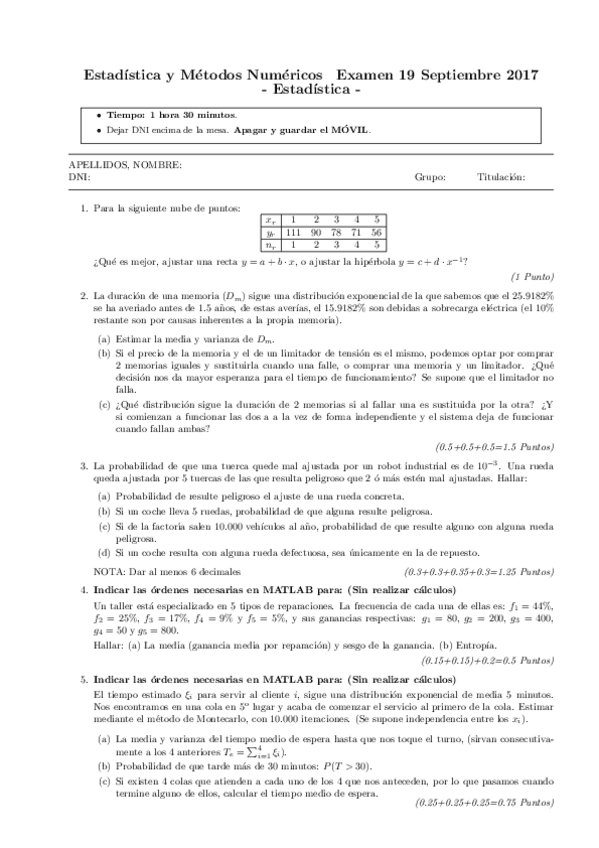 Exámenes Estadística y Métodos