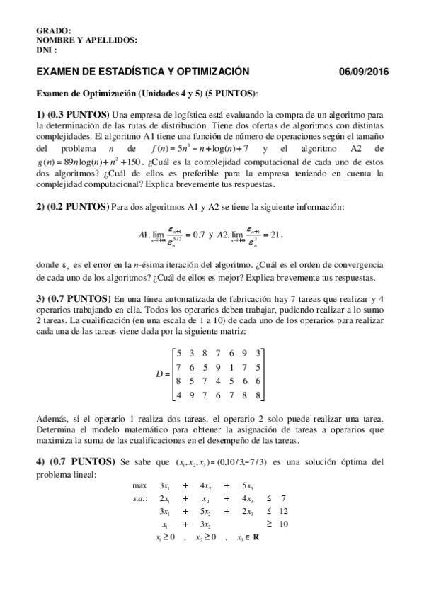 He publicado nuevos examenes de 1º Estadística y Optimización: EXAMENES RECOPILACION