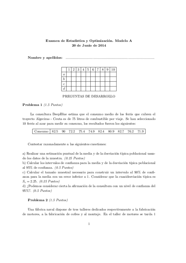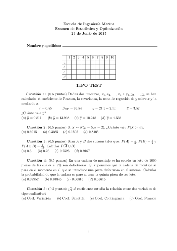 He publicado nuevos examenes de 1º Estadística y Optimización: Estadistica y Optimizacion