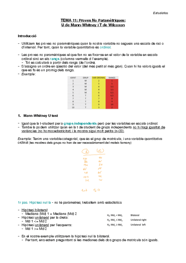 Apuntes - Estadística - TEMA 11 Proves NO paramètriques (Psicologia UB 1r).pdf