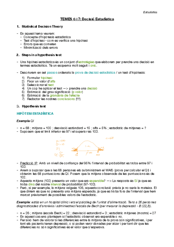Apuntes - Estadística - TEMES 6 i 7 DECISIÓ ESTADÍSTICA (Psicologia UB 1r).pdf