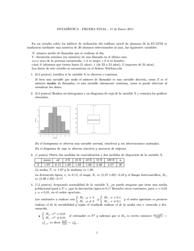 Exámenes resueltos estadistica