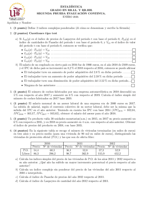 Examenes y Ejercicios Numeros Indices