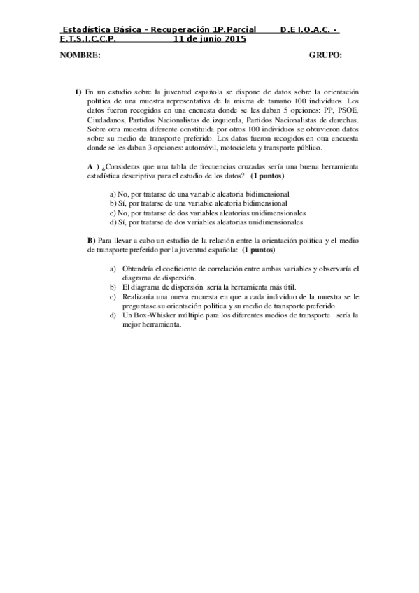 He publicado nuevos examenes de 1º Estadística: RECUPERACION-1PRUEBA-PARCIAL1415.docx