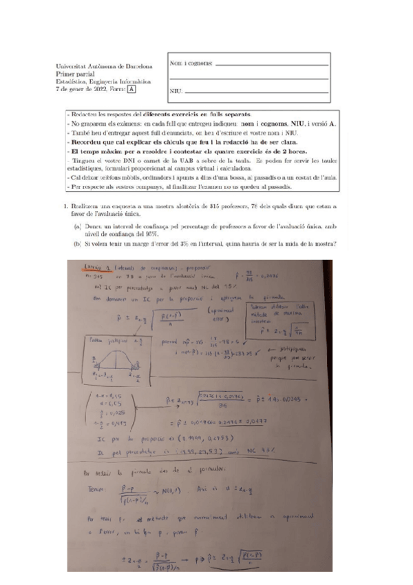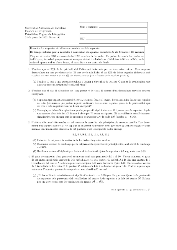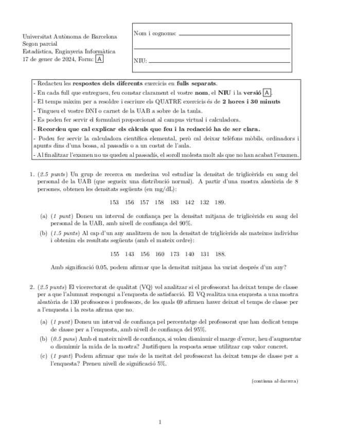 He publicado nuevos examenes de 2º Estadística: Examens 1 parcial