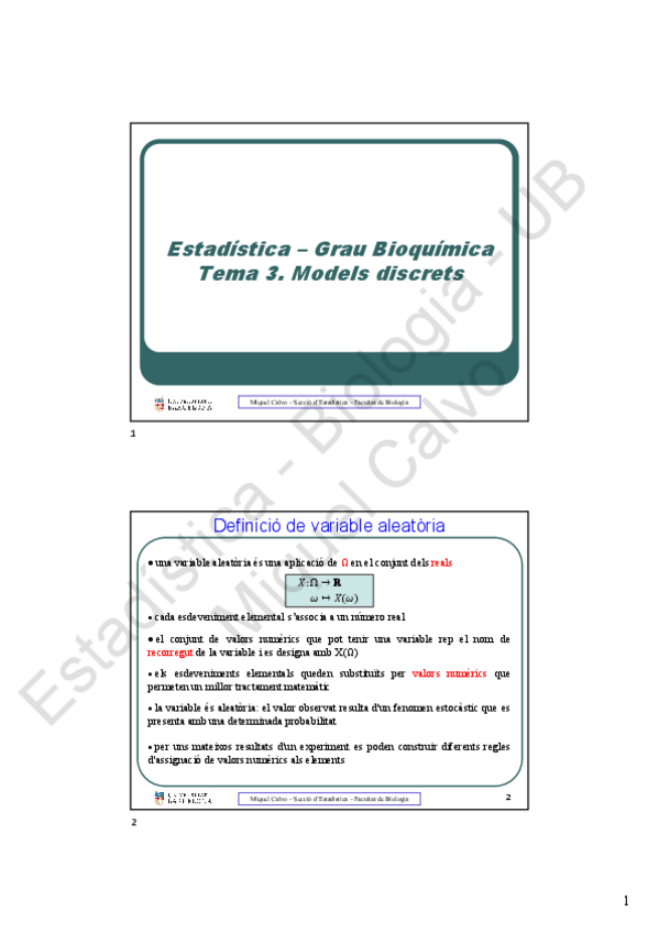 He publicado nuevos apuntes de 1º Estadística: Models discrets i continus