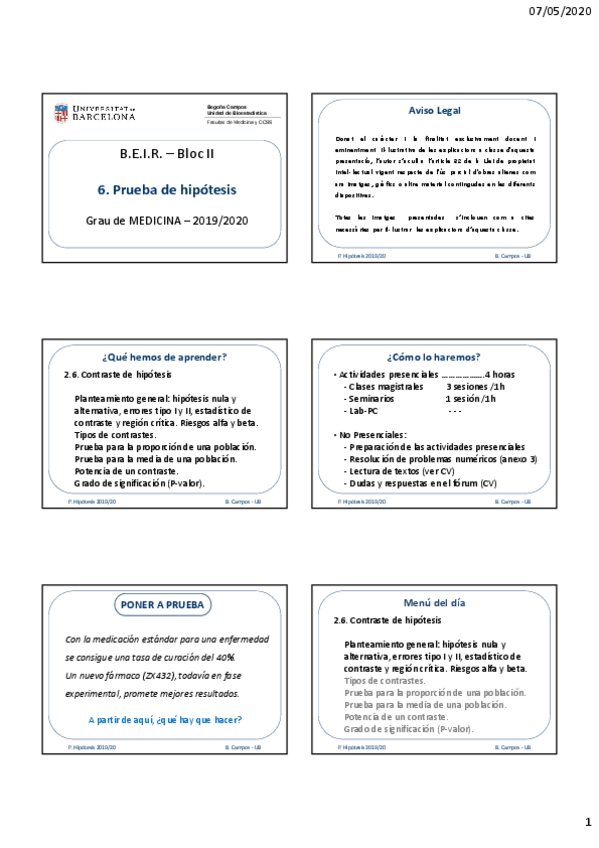 He publicado nuevos apuntes de 1º Estadística: Contrast d'hipòtesis