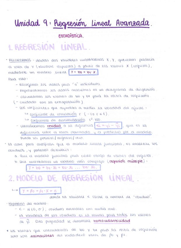 He publicado nuevos apuntes de 1º Estadística: Unidad 9. Regresión Lineal Avanzada.pdf