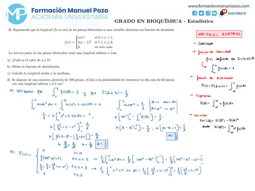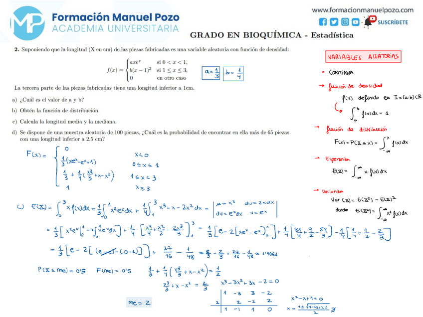 ACADEMIA UNIVERSITARIA INTENSIVO ESTADÍSTICA GRADO EN BIOQUÍMICA Resolución paso a paso de todos tus ejercicios y exámenes de años anteriores. Clases online y presenciales. Horario de mañana y tarde.