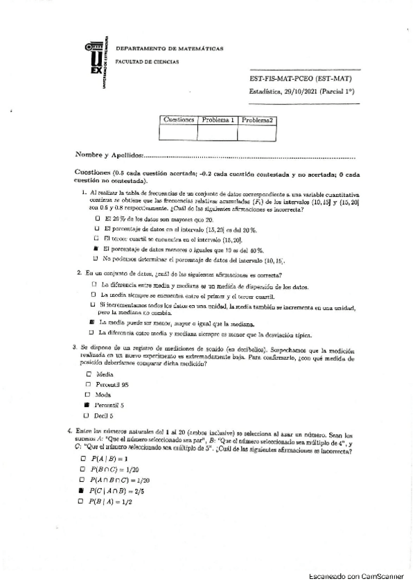 He publicado nuevos examenes de 1º Estadística: Examenes varios estadística