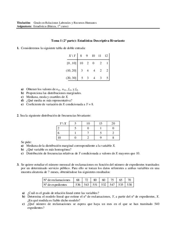 He publicado nuevos ejercicios de 1º Estadística: Relacion_2_Analisis_bivariante_.pdf