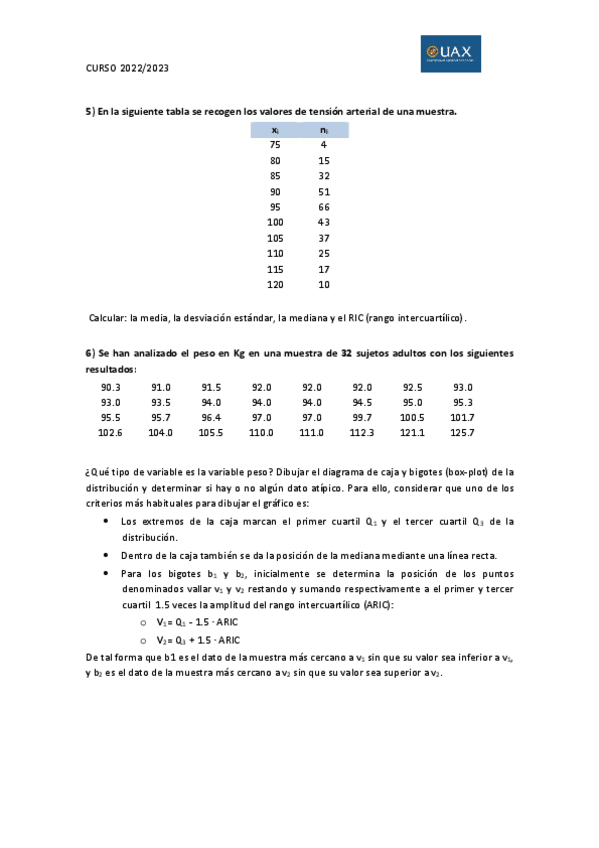 He publicado nuevos ejercicios de 1º Estadística: Tema1ejerciciosdescriptiva20222023.pdf