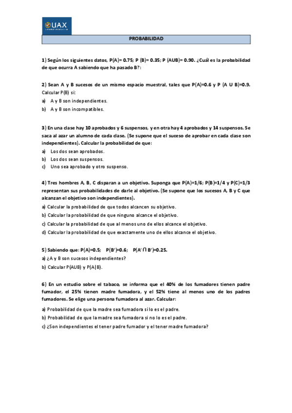 He publicado nuevos ejercicios de 1º Estadística: Tema2ejerciciosprobabilidad.pdf