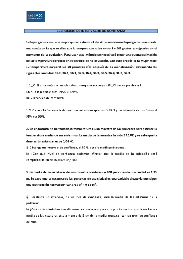 He publicado nuevos ejercicios de 1º Estadística: Tema4ejerciciosinervaloshipotesis.pdf