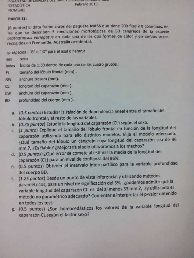 He publicado nuevos apuntes de 1º Estadística: Exam Feb2014 fichero de datos SOILS paquete CAR.odt
