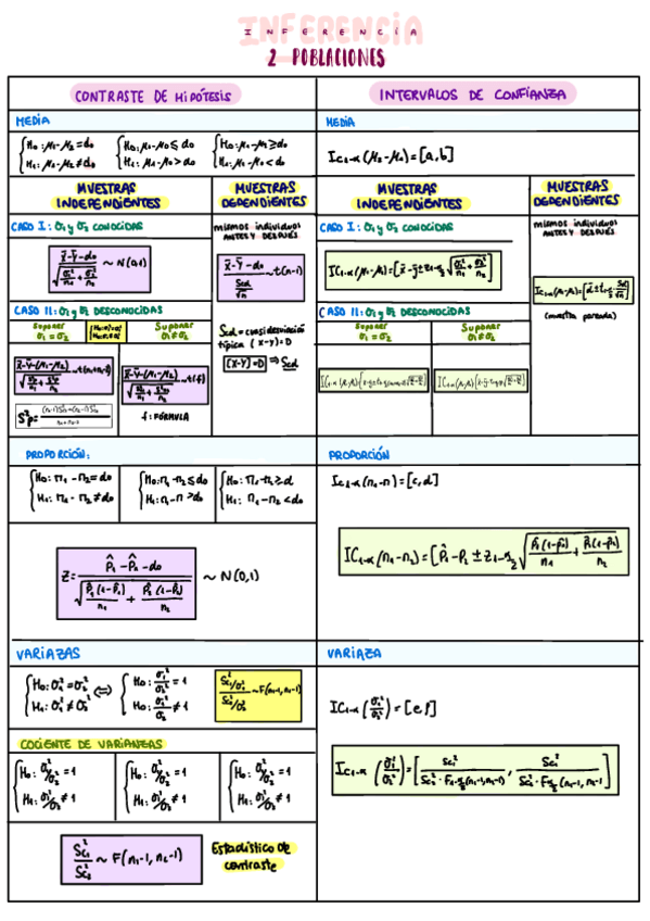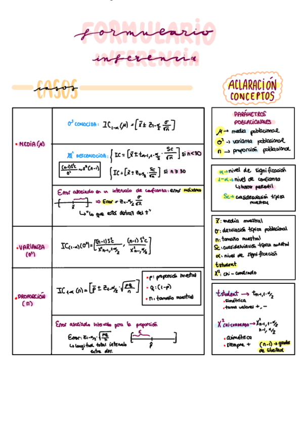 Formulario de todos los bloques de Estadística