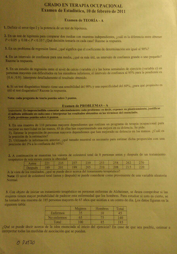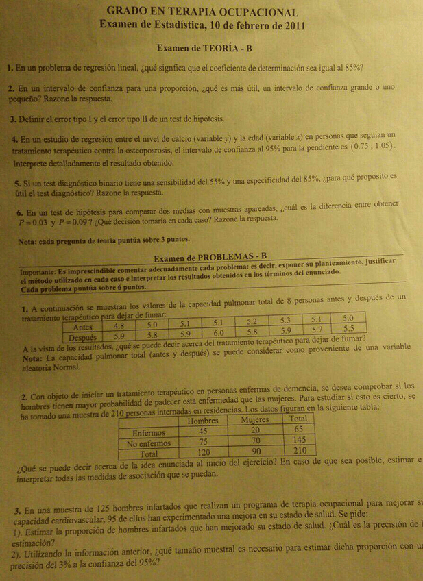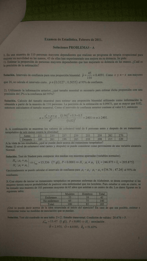 exámenes estadística y soluciones