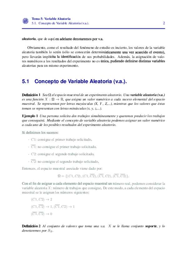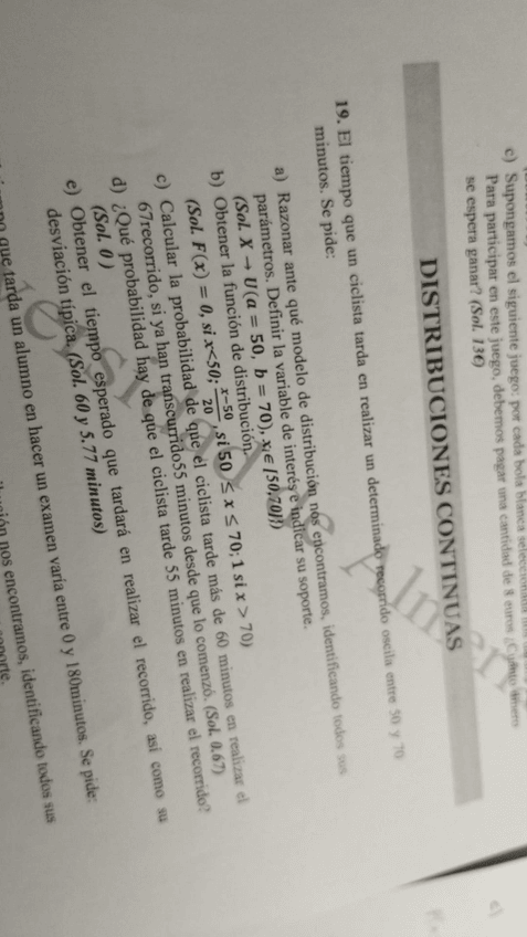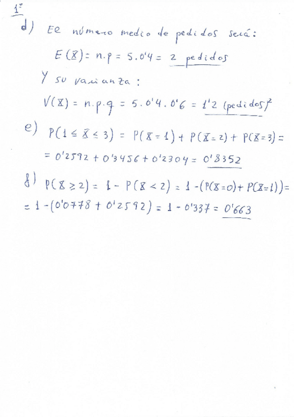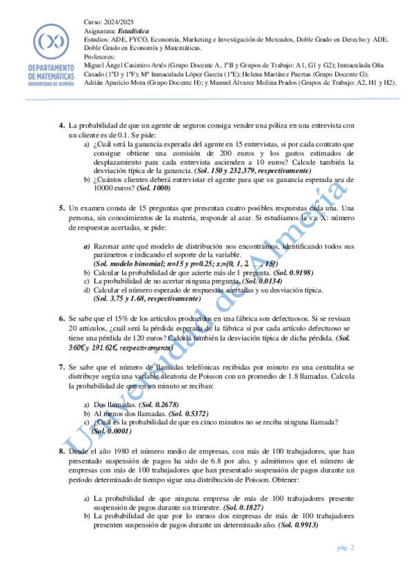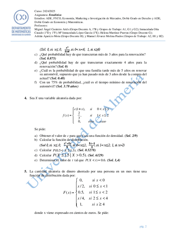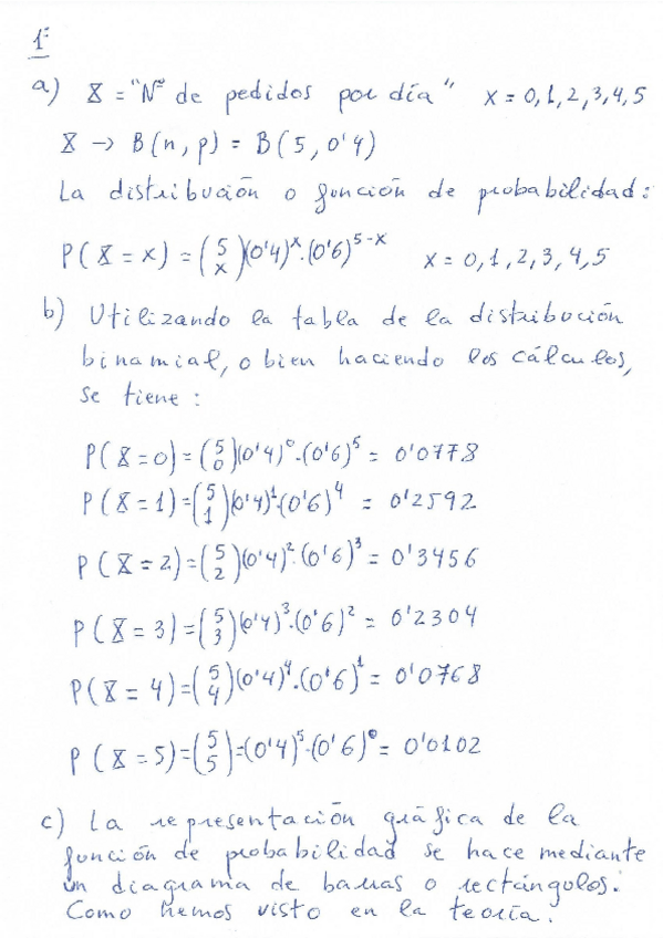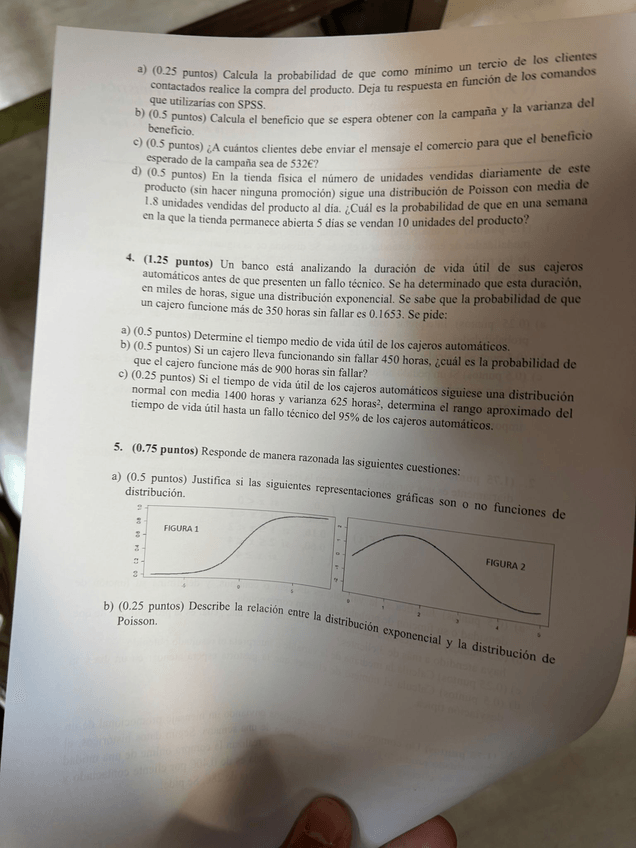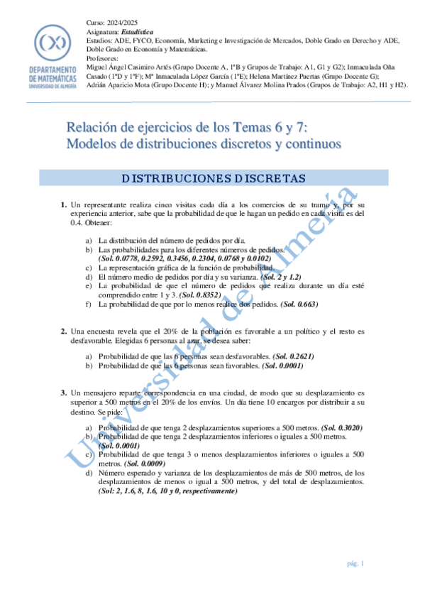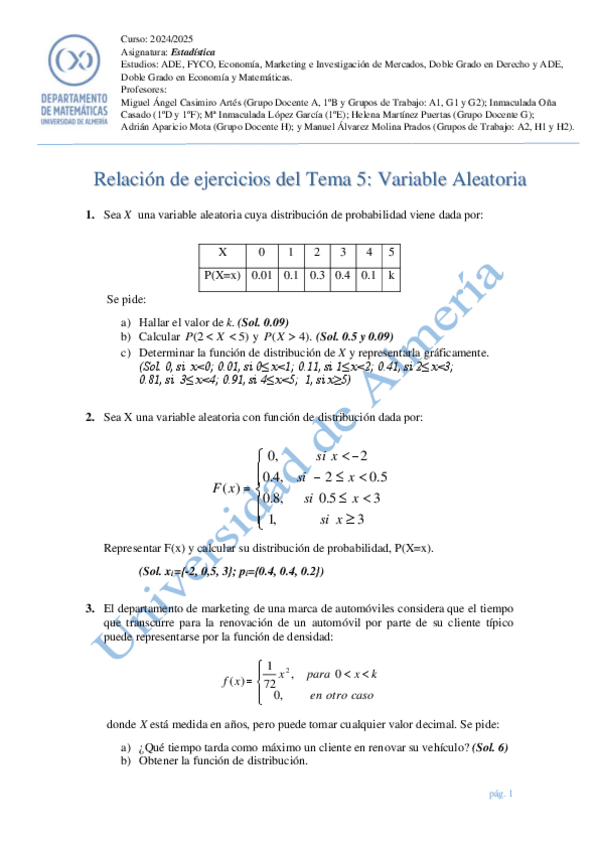 Ejercicios de los temas 5, variable aleatoria y temas 6 y 7, modelos de distribución discretos y continuos.