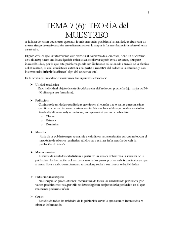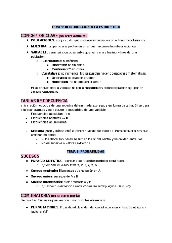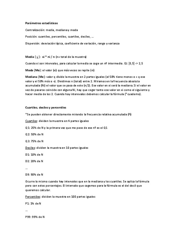 Resúmenes de los temas de estadística, solo con lo importante para el examen y quitando algunas cosas que ha ido diciendo la profesora que no entran.