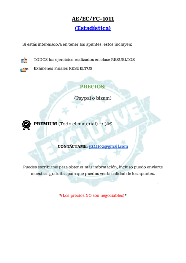 He publicado nuevos apuntes de 2º Estadística: Resúmenes de la Asignatura