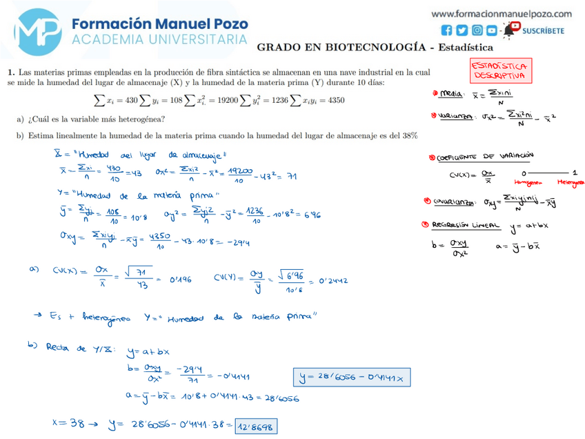 ACADEMIA UNIVERSITARIA INICIO DE CURSO ESTADÍSTICA Resolución paso a paso de todos tus ejercicios y exámenes de años anteriores. TODAS TUS CLASES GRABADAS Y EN PDF HASTA EL DÍA DEL EXAMEN. Clases online y presenciales. Horario de mañana y tarde.