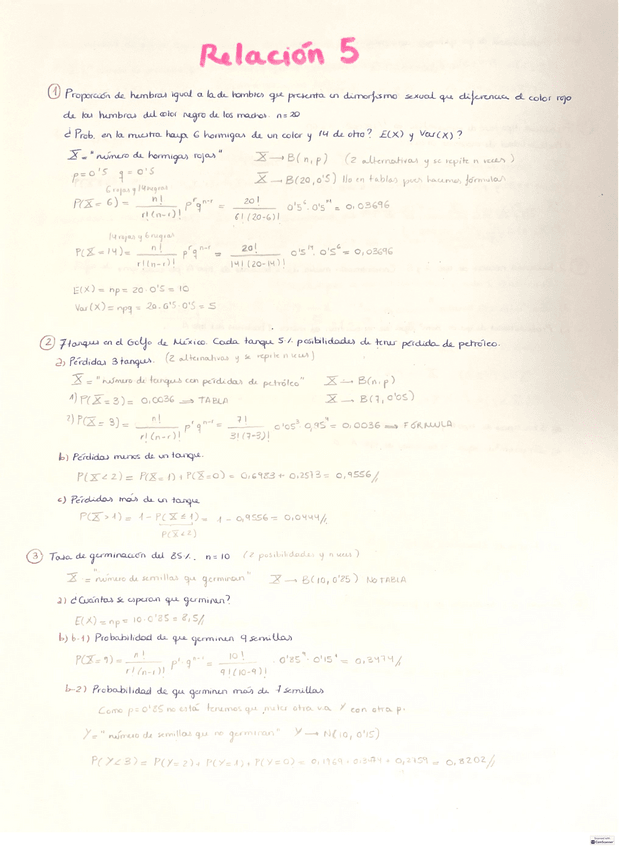 Relaciones de problemas Estadística