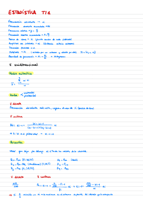 He publicado nuevos apuntes de 1º Estadística: Resúmenes Temas a mano