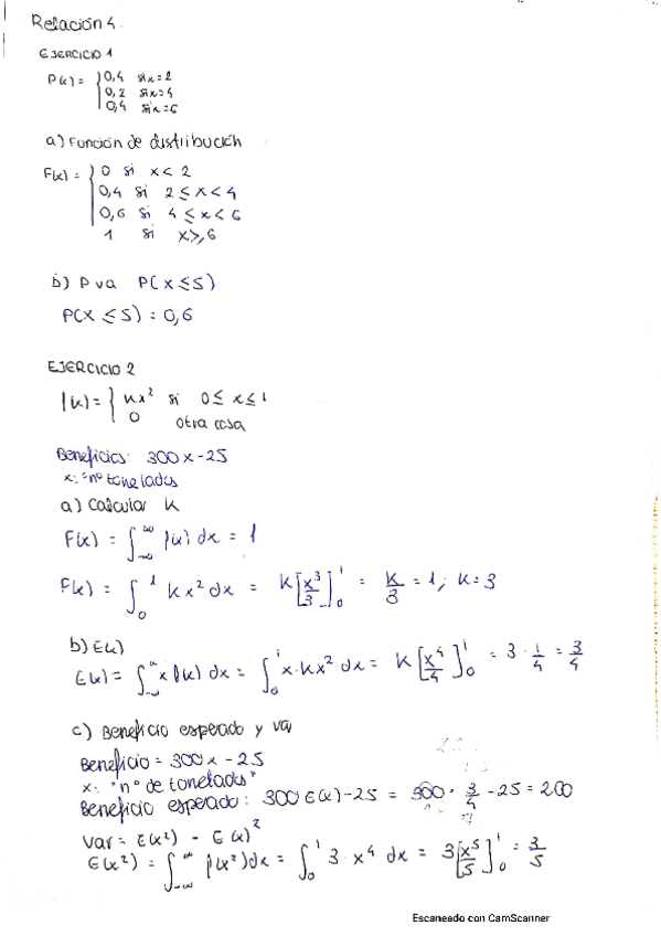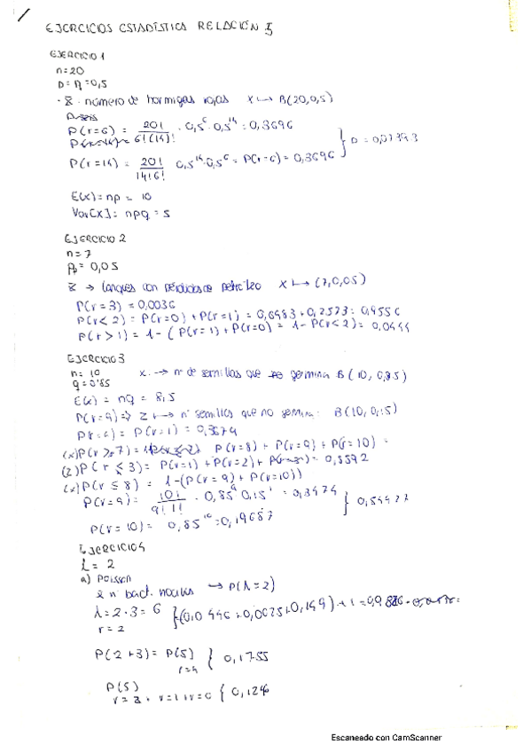 Relaciones de ejercicios estadistica
