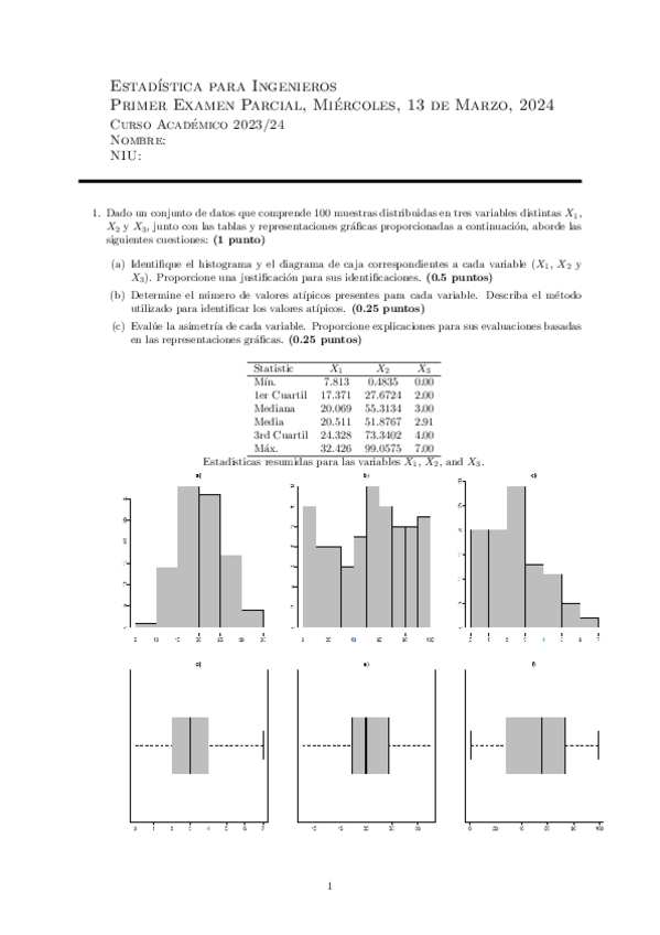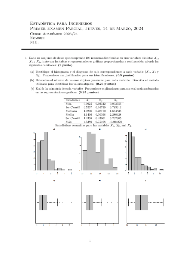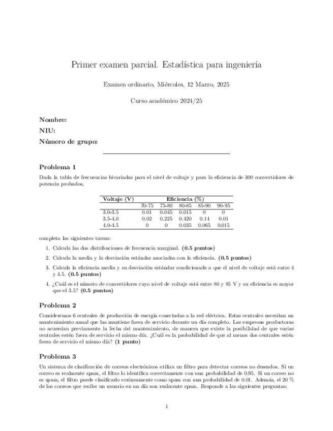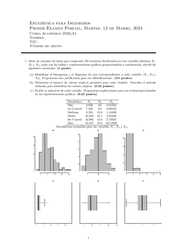 He publicado nuevos examenes de 1º Estadística: 1º Parcial 2024-25.pdf