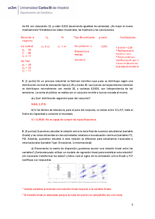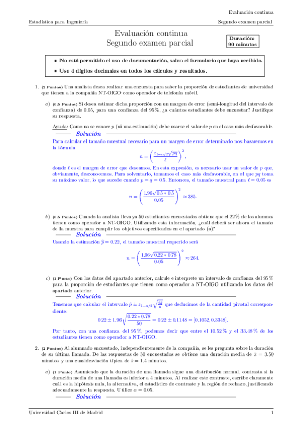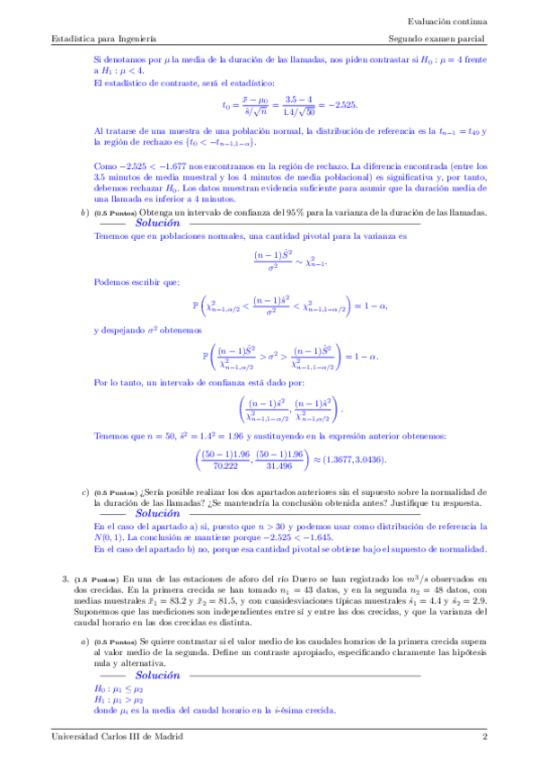 He publicado nuevos examenes de 1º Estadística: Segundo examen parcial soluciones.pdf