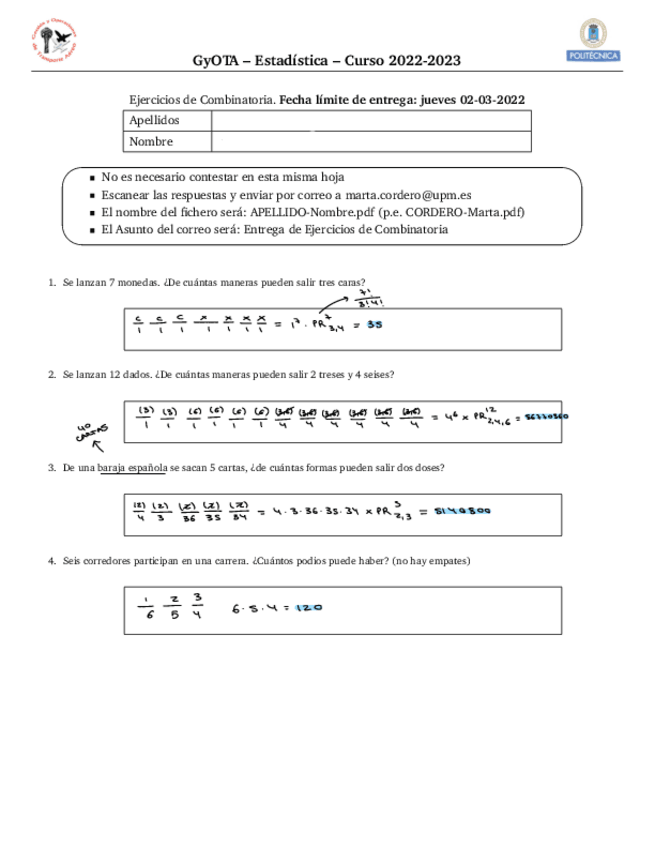 He publicado nuevos ejercicios de 1º Estadística: Ejercicios-Entrega-Combinatoria.pdf