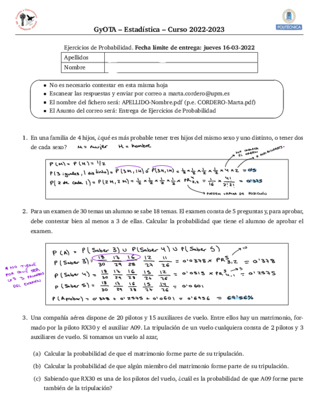 He publicado nuevos ejercicios de 1º Estadística: Ejercicios-Entrega-Probabilidad.pdf