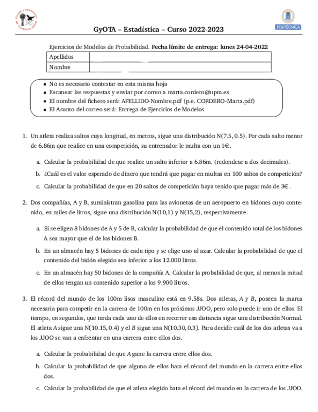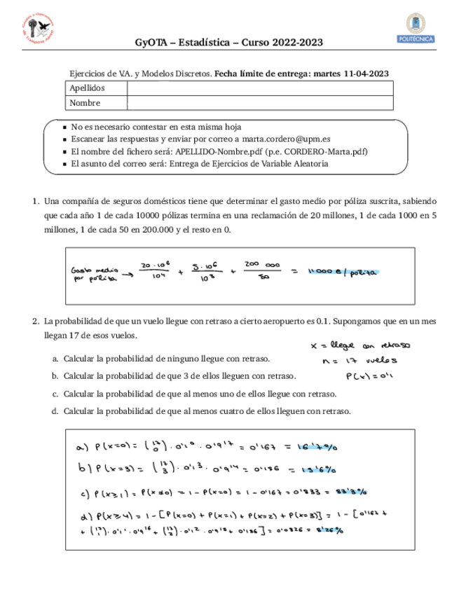 He publicado nuevos ejercicios de 1º Estadística: Ejercicios-Entrega-Variable-AleatoriaModelos-Discretos.pdf