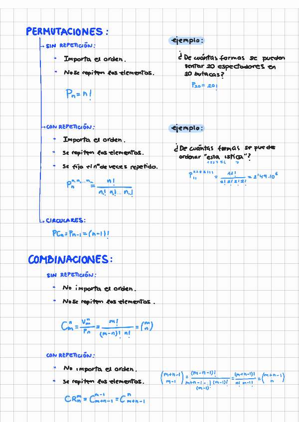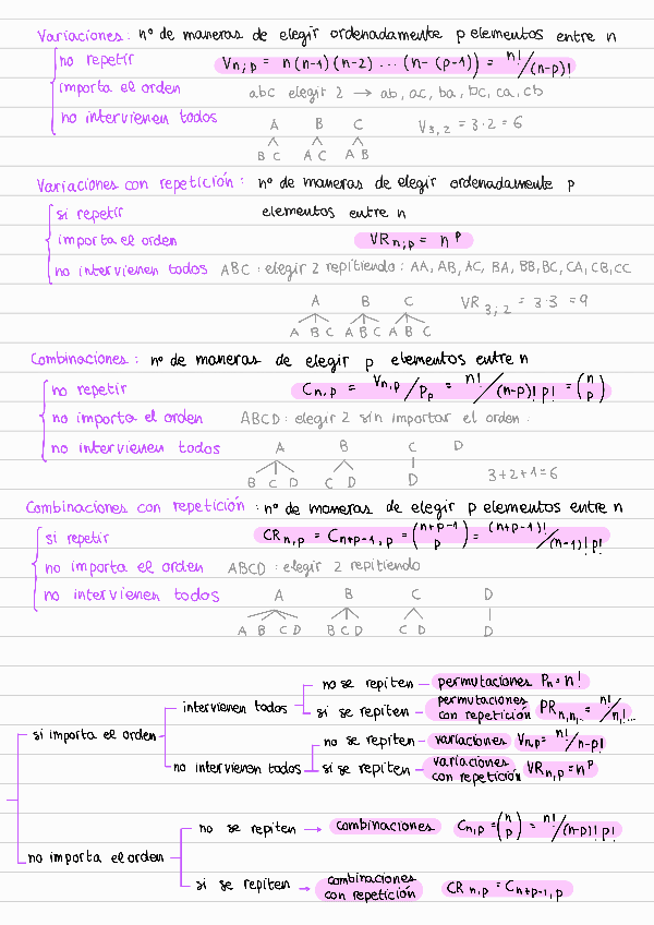 Tabla resumen + ejemplos de combinatoria