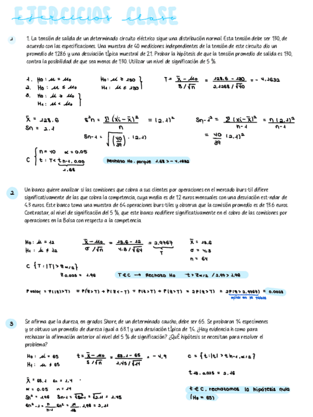 U8. Contraste de Hipotesis. Apuntes + Ejercicios explicativos