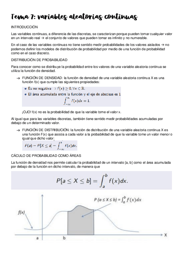U6. Variables Aleatorias Continuas. Apuntes + ejercicios explicativos